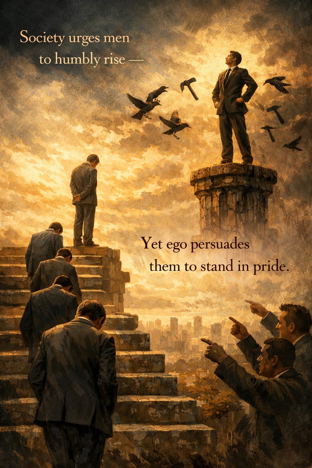 Yet ego persuades them to stand in pride.